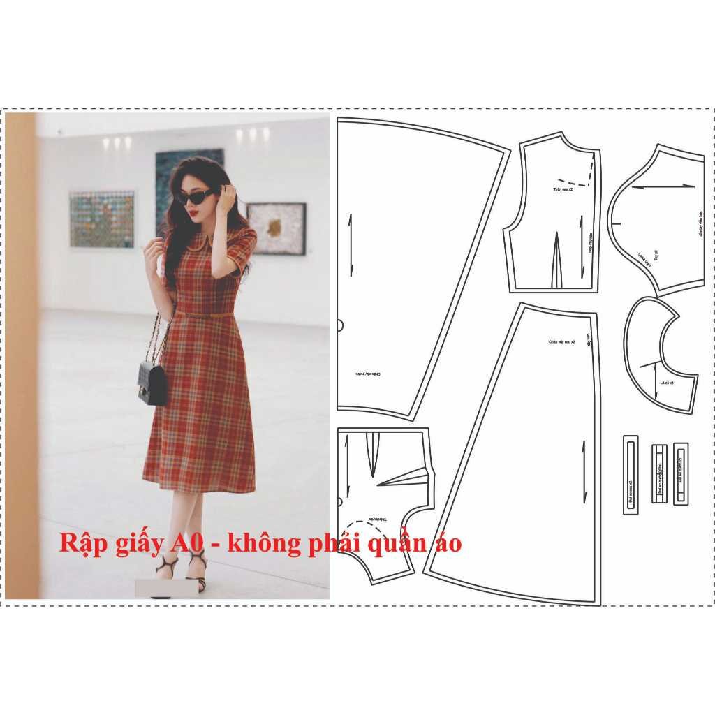 Rập được in từ giấy A0, không cắt sẵn – Dạng bảng vẽ, không phải sản phẩm. Rập đã được may thử, hợp với vải không co dãnn, may dây kéo sau.