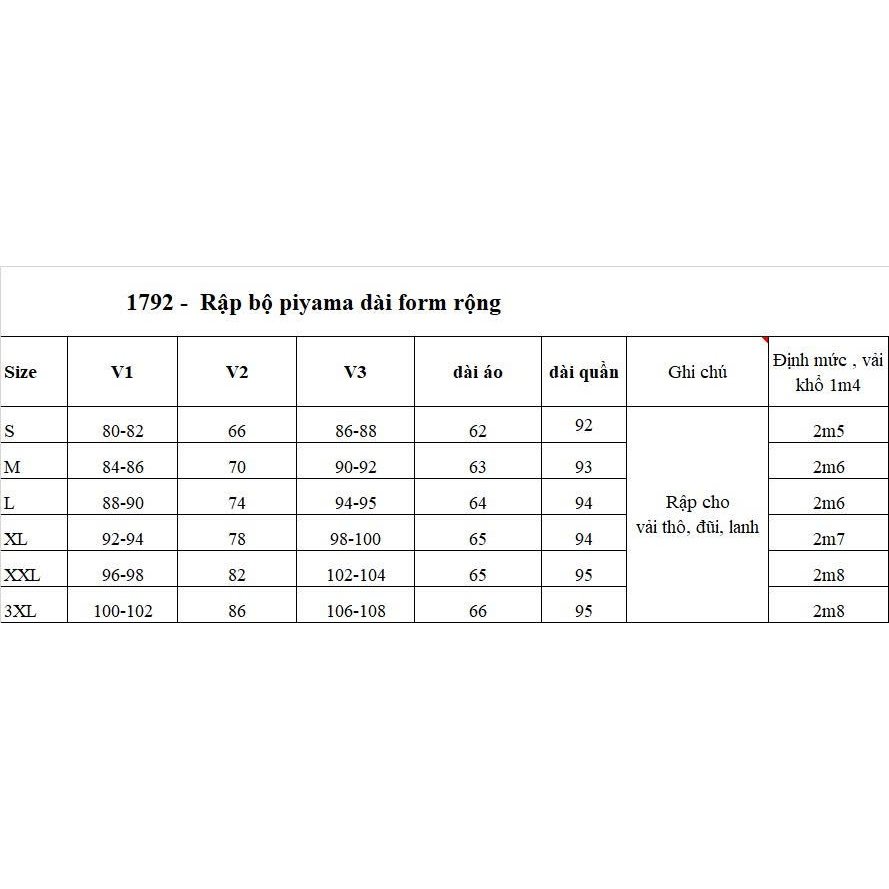Rập giấy A0 mã 1792 – Rập may bộ piyama dài