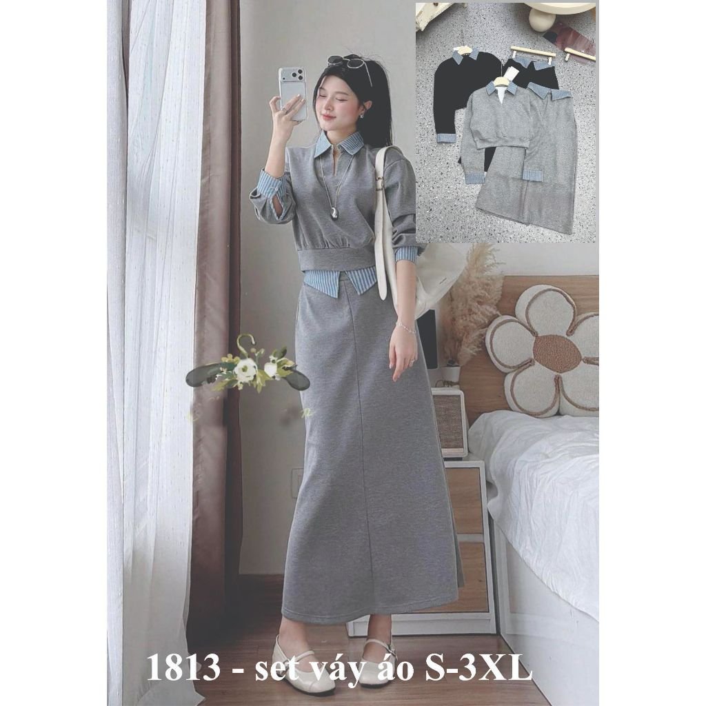 Rập giấy A0 mã 1813 – Rập may set váy áo: áo croptop, chân váy sau có thun – không may dây kéo: dài áo 46-50cm, dài váy 87-90cm