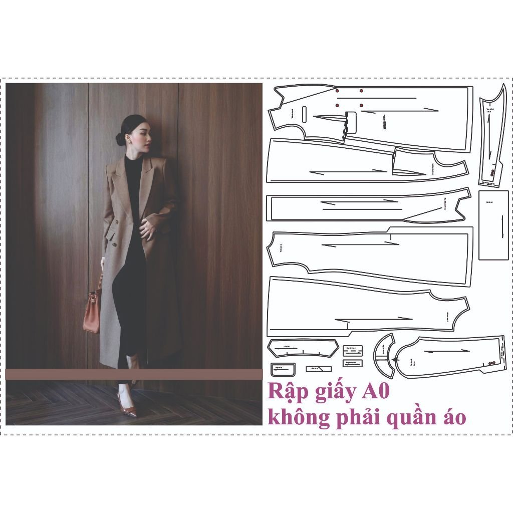 Rập giấy A0 mã 1821 – rập may áo măng tô 2 lớp – có hướng dẫn trình tự may, dài áo 114-117cm tùy sz.