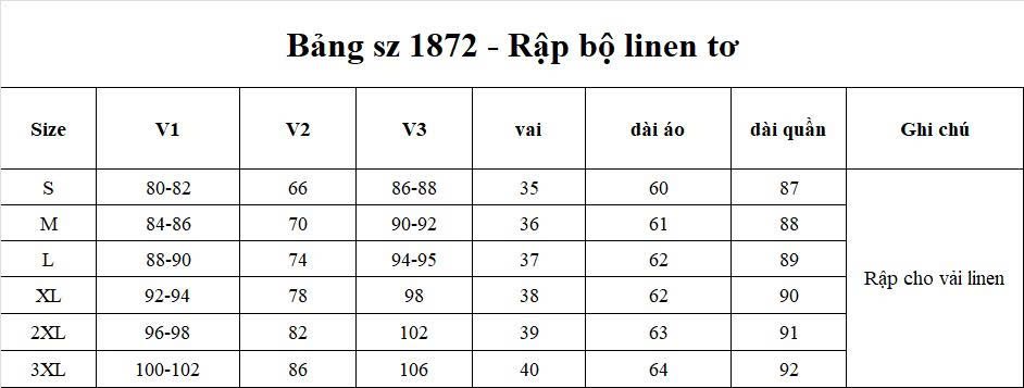 + 3XL: ngực 100-102cm, vai 40cm, eo 86cm, V3 : 106cm