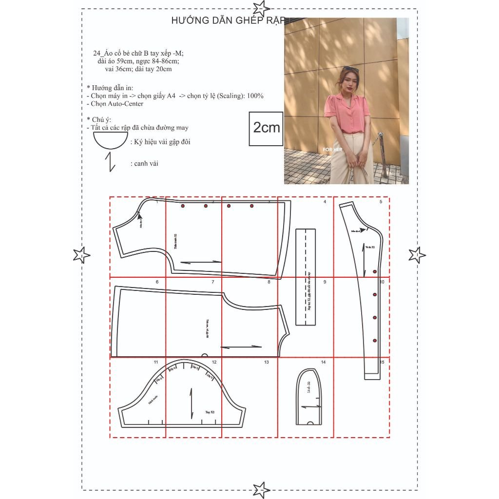 Rập được in từ giấy A0 – Dạng bảng vẽ, không phải sản phẩm. Rập đã được may thử – hợp với vải linen, lụa