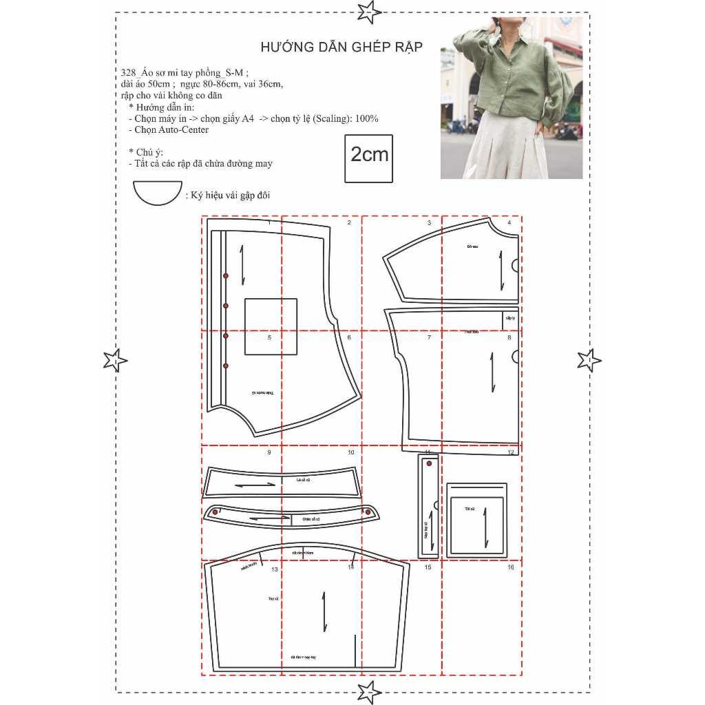 Rập áo sơ mi tay phồng mã 328..