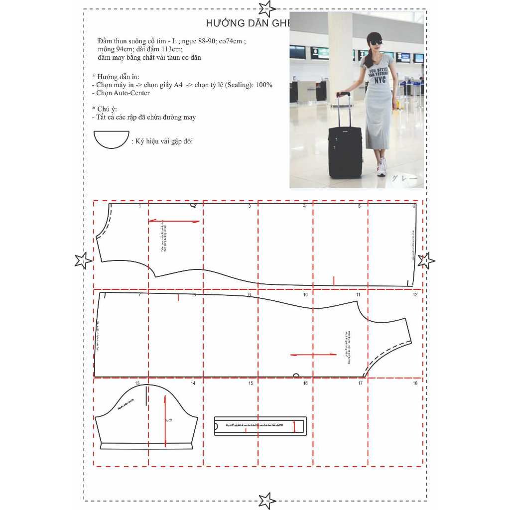 Rập được in từ giấy A0 – Dạng bảng vẽ, không phải sản phẩm. Rập đã được may thử, hợp với vải thun cotton