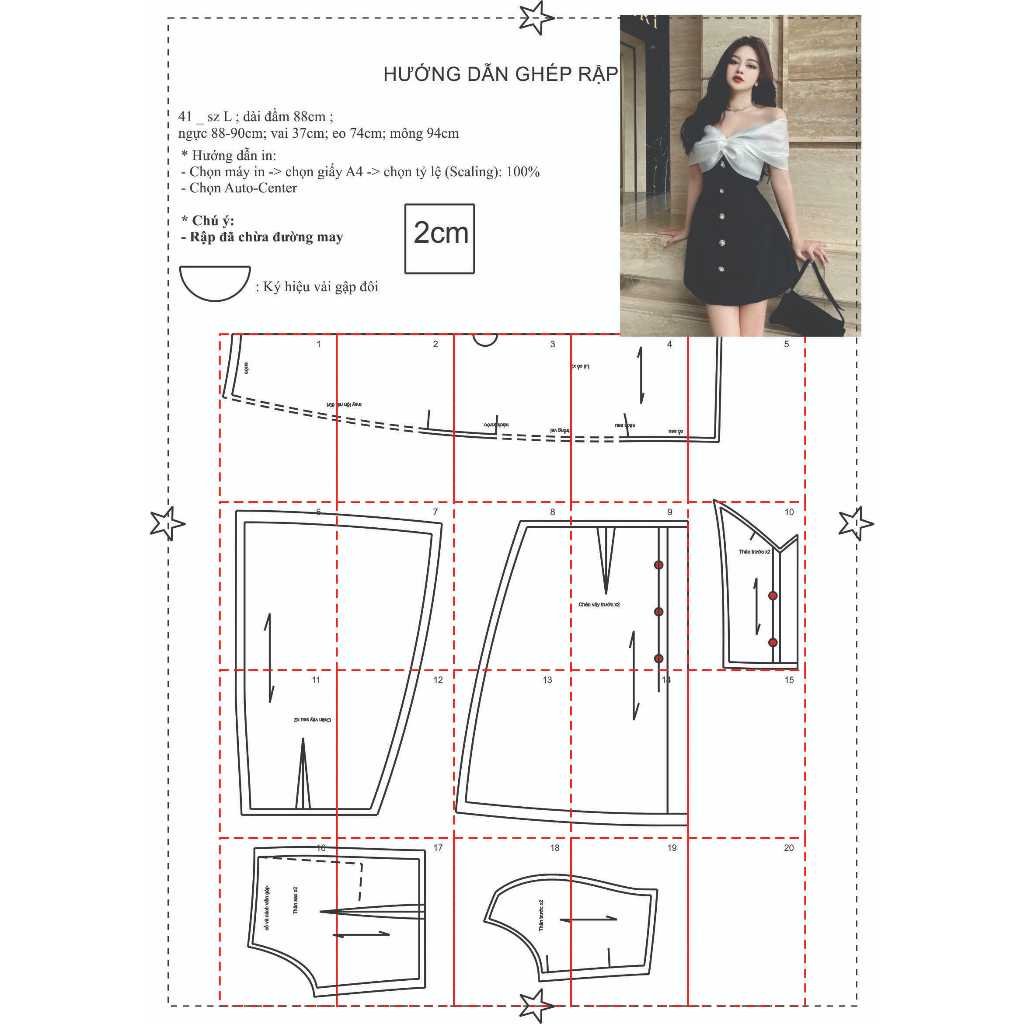 Rập được in từ giấy A0 – Dạng bảng vẽ, không phải sản phẩm. Rập đã được may thử, hợp với vải không co dãn.