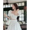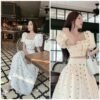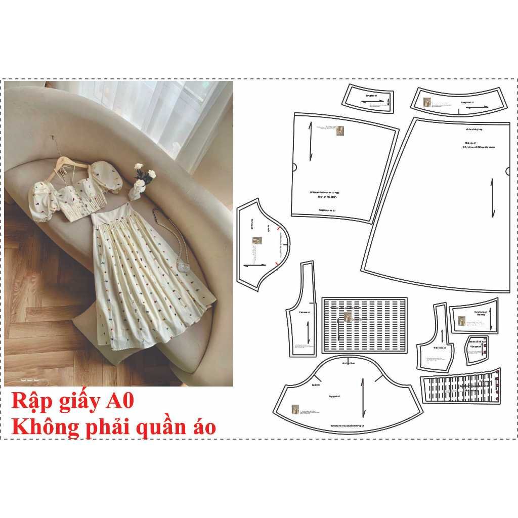 Rập mã 49 – rập nguyên set – áo sau may thun chỉ, chân váy may dây kéo sau. Cần 2m5 vải khổ 1m4