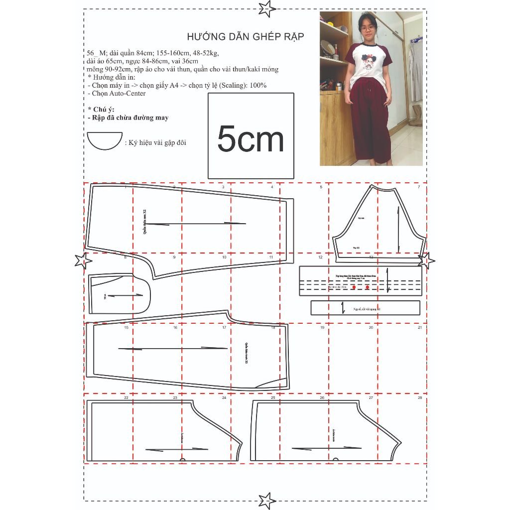 Rập được in từ giấy A0 – Dạng bảng vẽ, không phải sản phẩm. Rập đã được may thử – hợp với vải thun cotton
