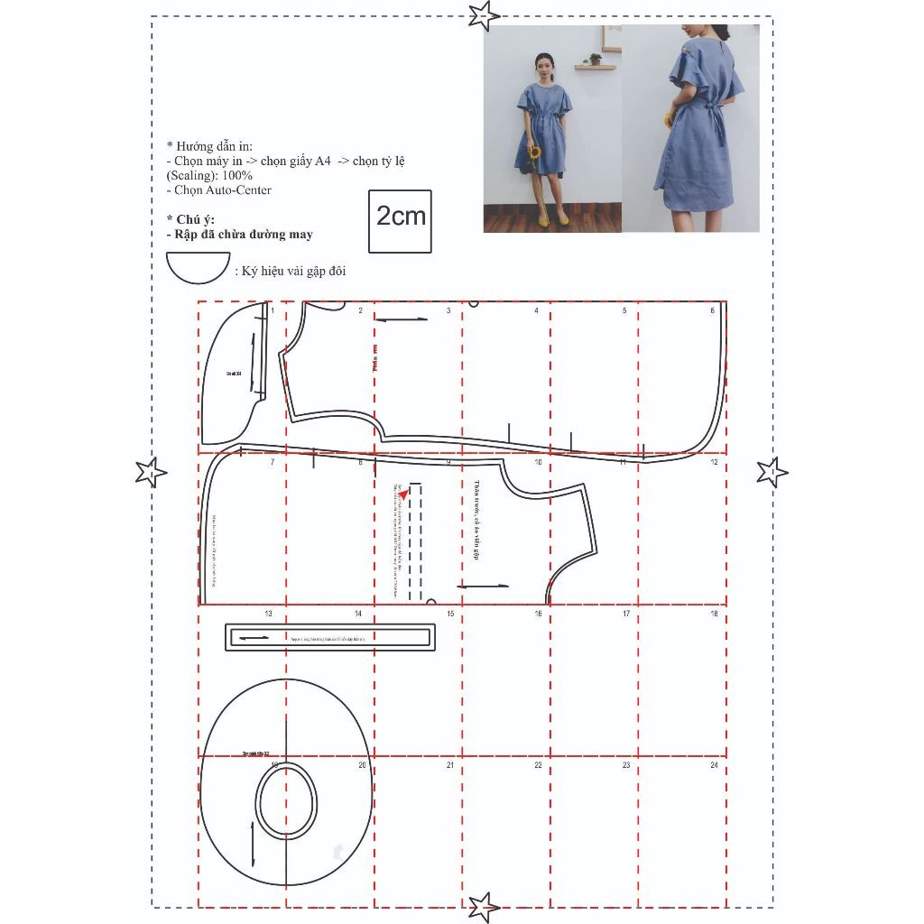 Rập giấy A0 mã 598 – đầm cánh tiên dáng suông