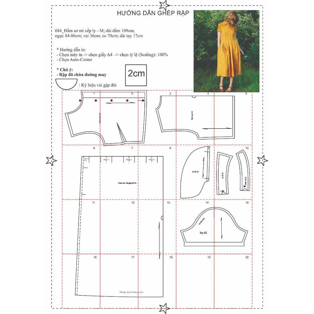 Rập giấy A0 mã 684 – đầm sơ mi
