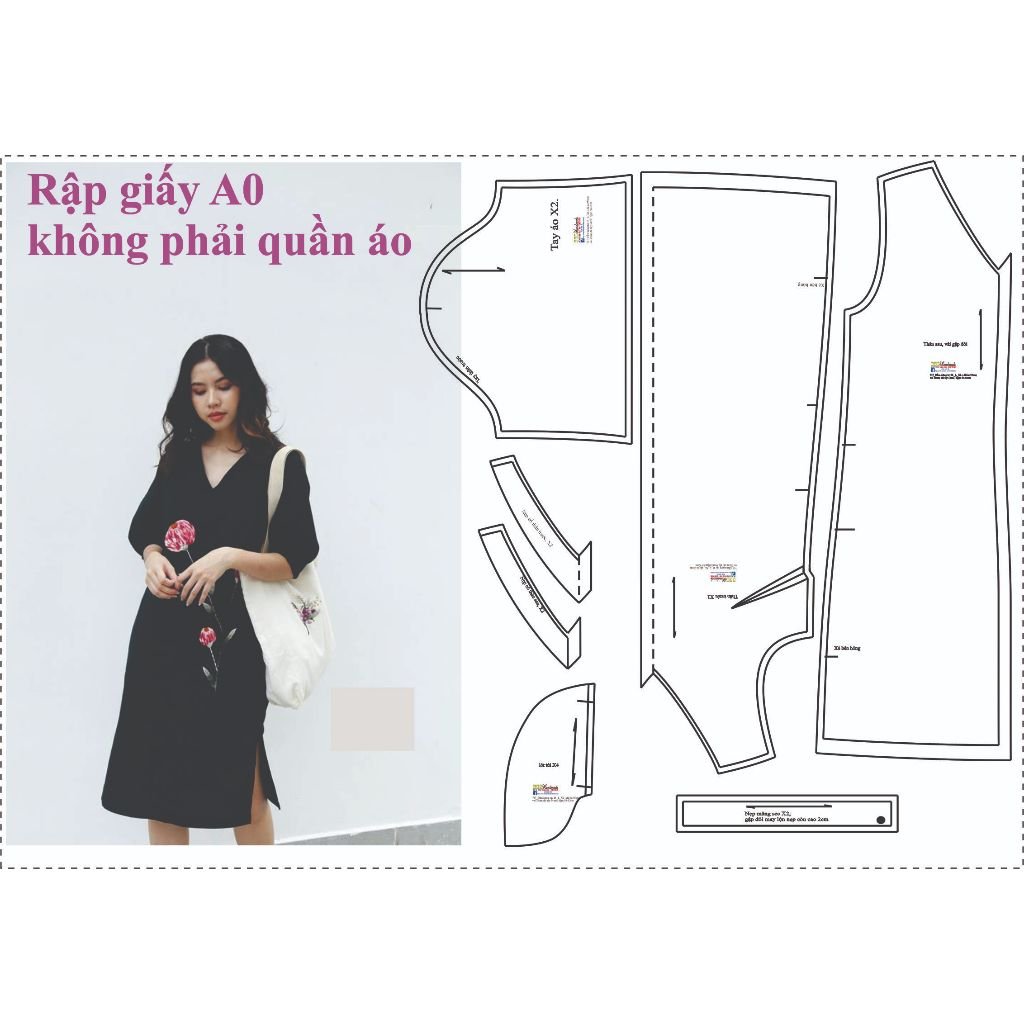 Rập được in từ giấy A0 – Dạng bảng vẽ, không phải sản phẩm. Rập đã được may thử, hợp với vải linen.