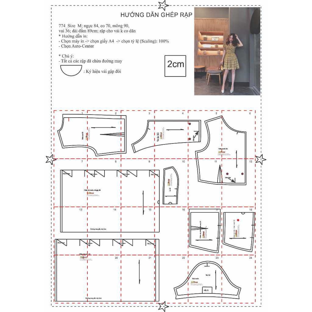 Rập giấy A0 mã 774 – đầm cổ bẻ