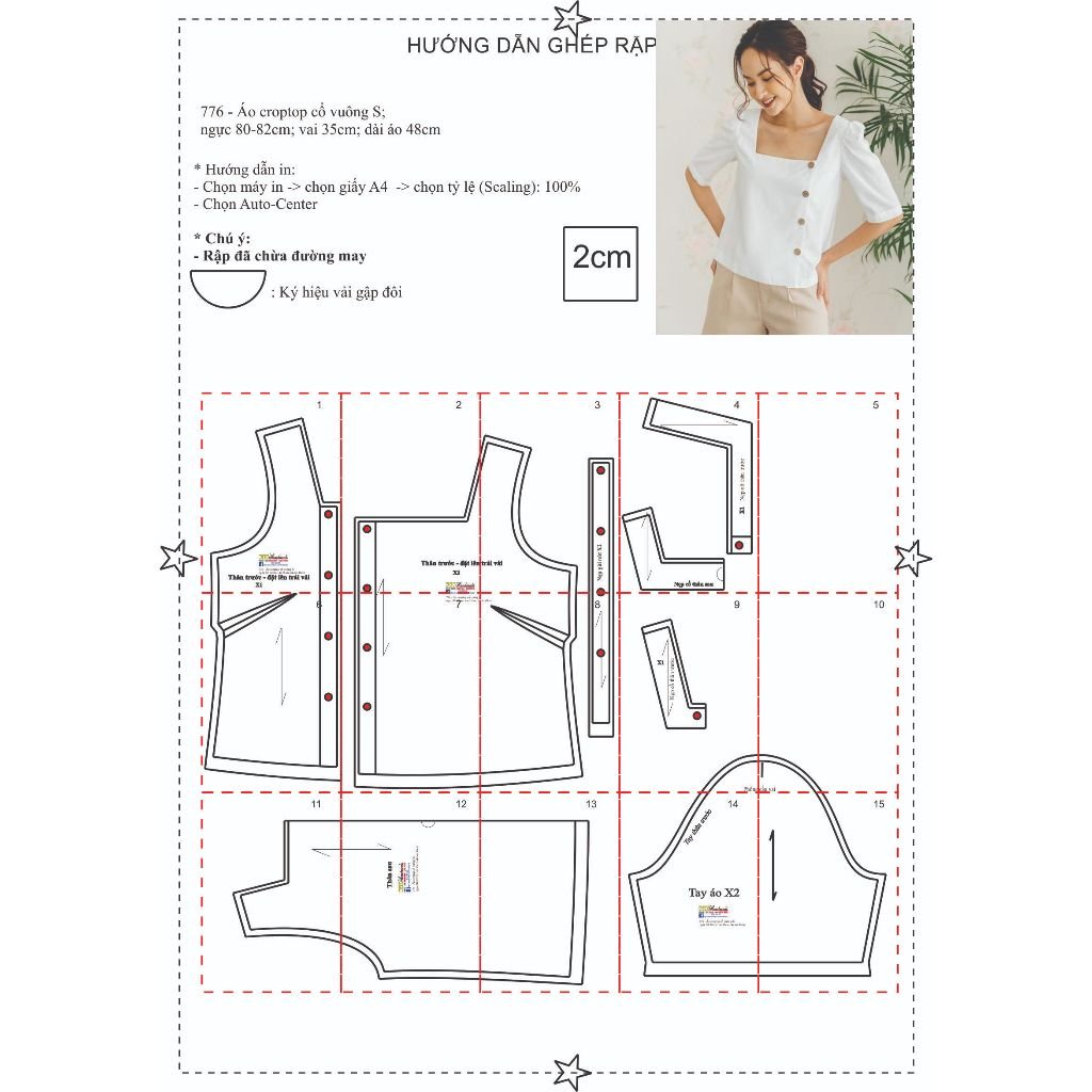 Rập giấy A0 mã 776 - áo croptop cổ vuông