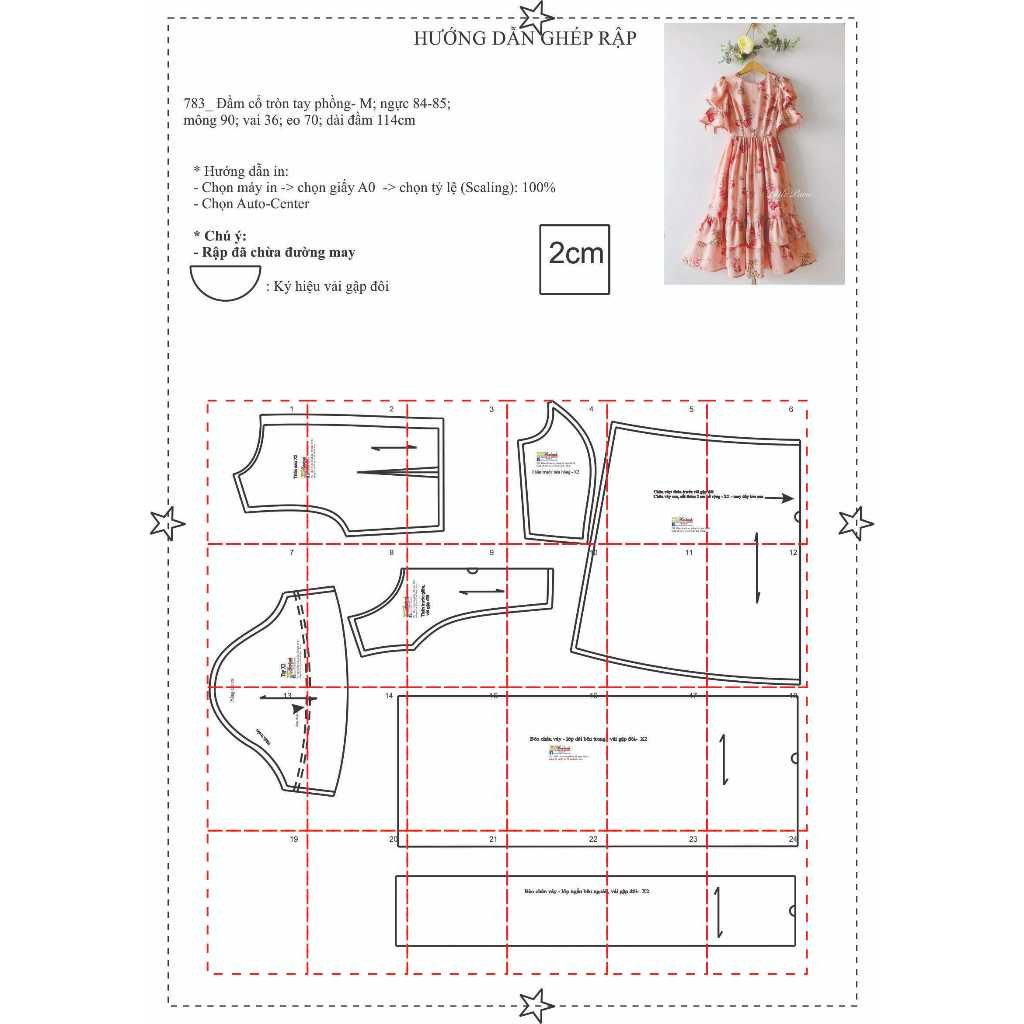 Rập giấy A0 mã 783 - đầm tay phồng mã 783