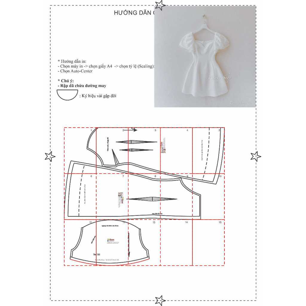 Rập được in từ giấy A0 – Dạng bảng vẽ, không phải sản phẩm. Rập đã được may thử, hợp với vải voan, vải ko co dãn.