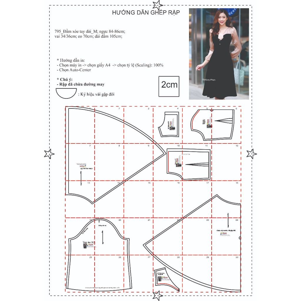 Rập giấy A0 mã 795 – đầm tay phồng