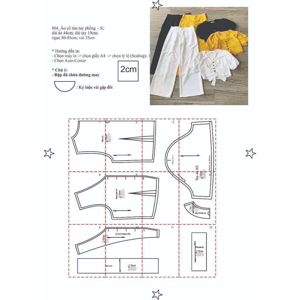 Rập được in từ giấy A0 – Dạng bảng vẽ, không phải sản phẩm. Rập đã được may thử – hợp với vải linen, đũi
