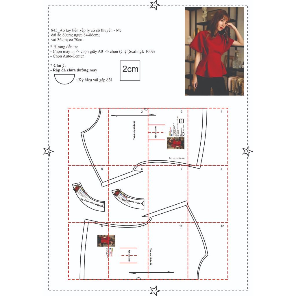 Rập giấy A0 mã 845 – áo xếp ly eo
