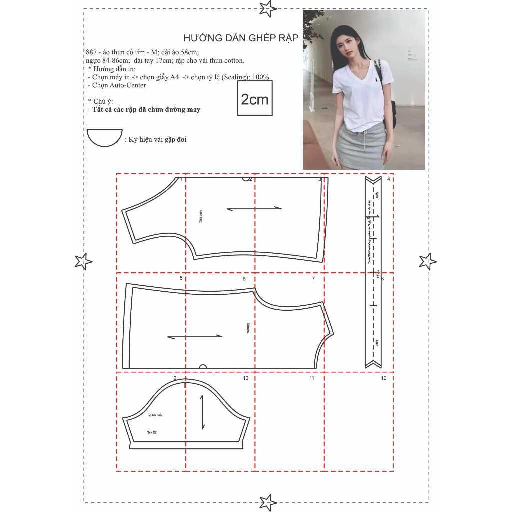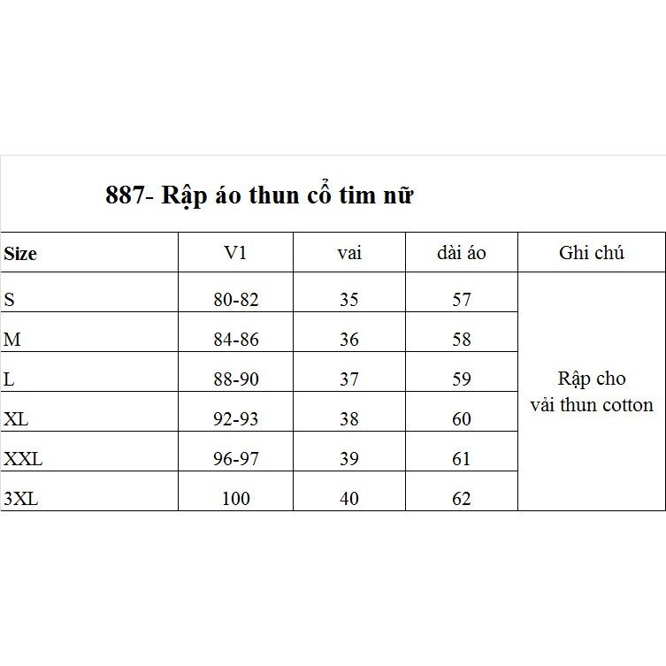 Rập mã 887 – Rập áo thun cổ tim nữ.