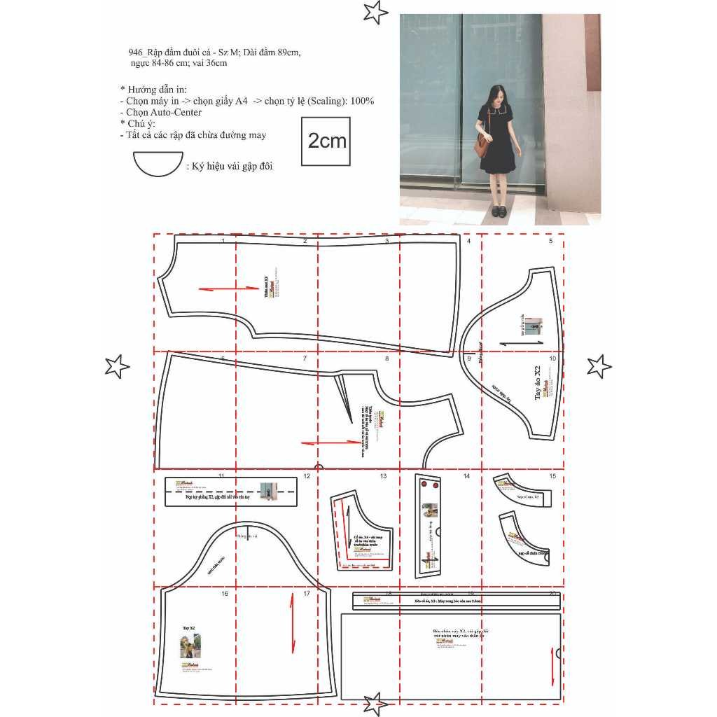 Rập giấy A0 mã 946 – đầm đuôi cá tay phồng