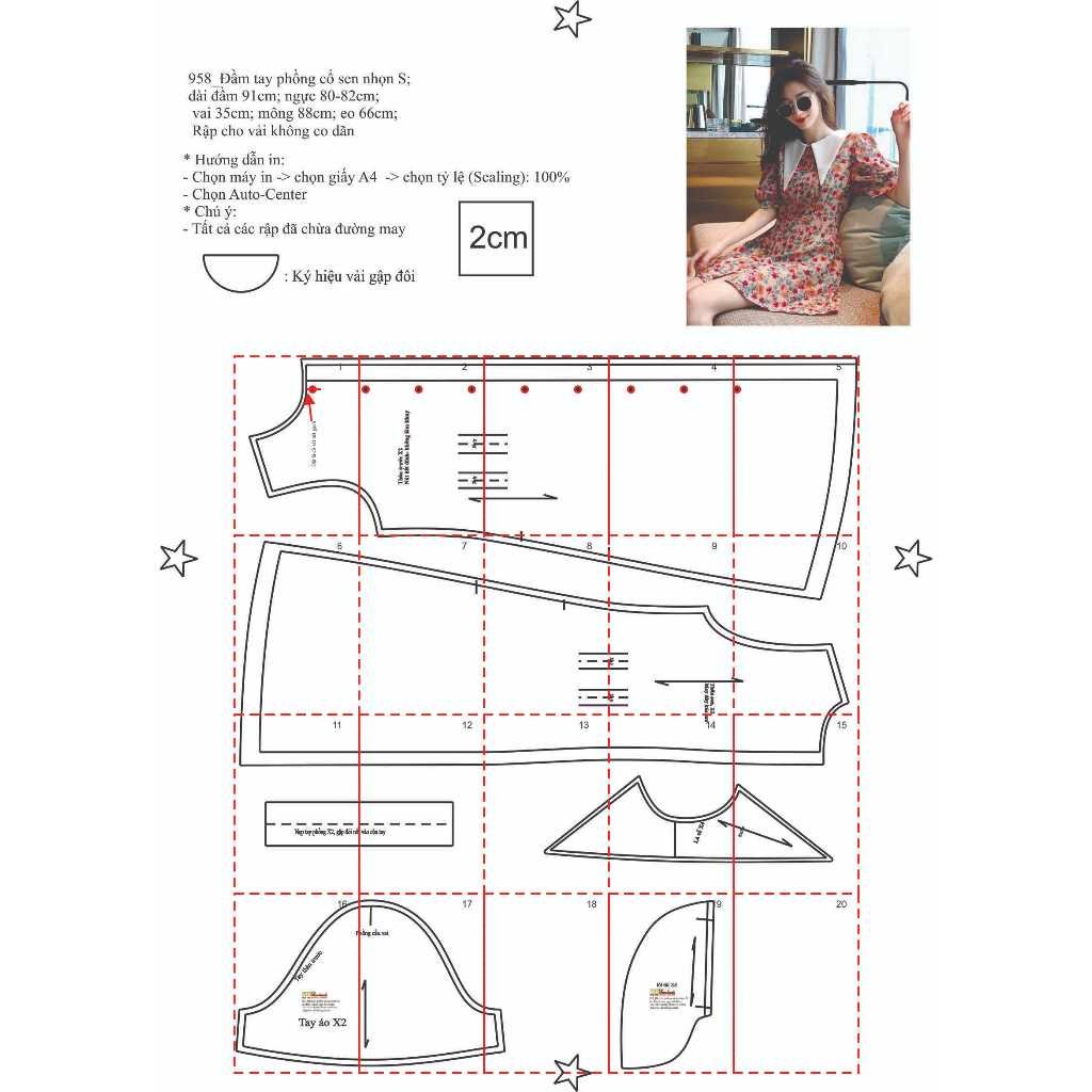 Rập giấy A0 mã 958 - đâm cổ sen nhọn