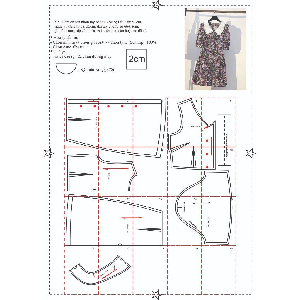 Rập giấy A0 mã 975 – đầm cổ sen
