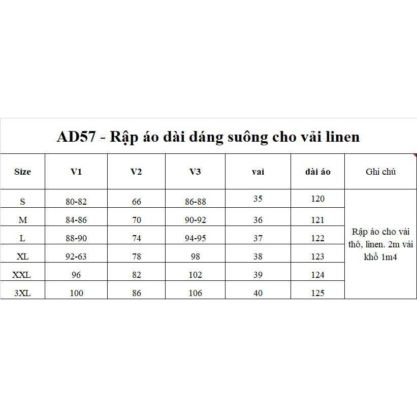 Rập giấy A0 mã AD57 – rập may áo dài, dành cho vải linen, may dây kéo sau.