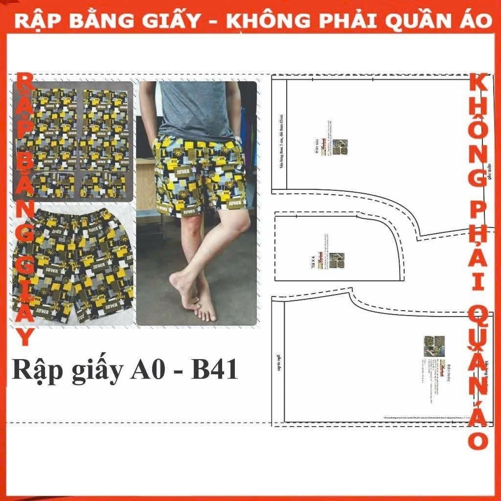 Rập giấy A0 mã B41 – rập may quần đùi nam – lưng thun có túi bên hông – rập cho vải thô