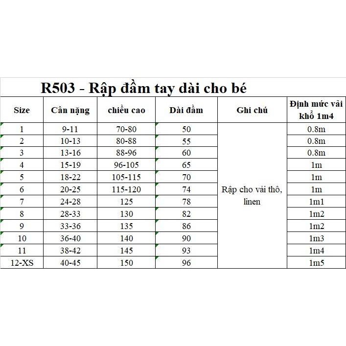 Rập Giấy A0 mã R503 – Rập may đầm cho bé 1-12 tuổi