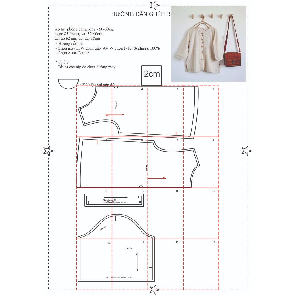 Rập được in từ giấy A0– Dạng bảng vẽ, không phải sản phẩm. Rập đã được may thử, hợp với vải thô, linen, đũi.