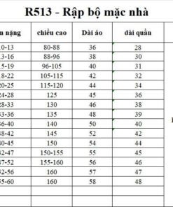 | Rộng vai | 30.3 | 31.3 | 31.9 | 32.7 | 33.5 | 34.3 |