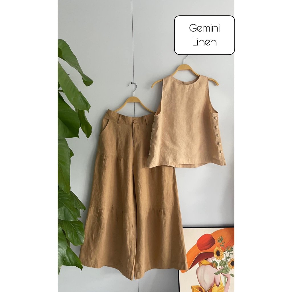 Rập nguyên bộ quần áo: áo sát nách, quần ống rộng may dây kéo