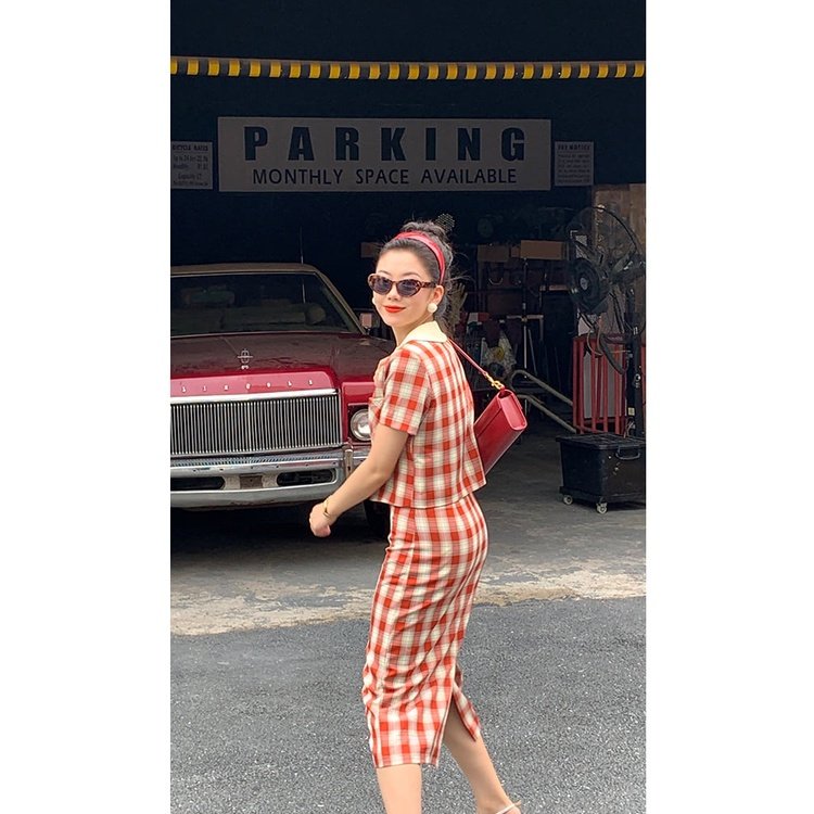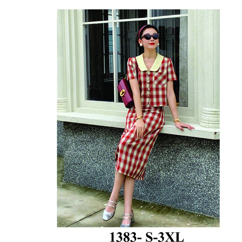 Rập set váy suông áo cổ sen mã 1383