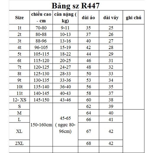 – Thông tin size như sau: chân váy từ sz 1-12 tuổi – lưng thun