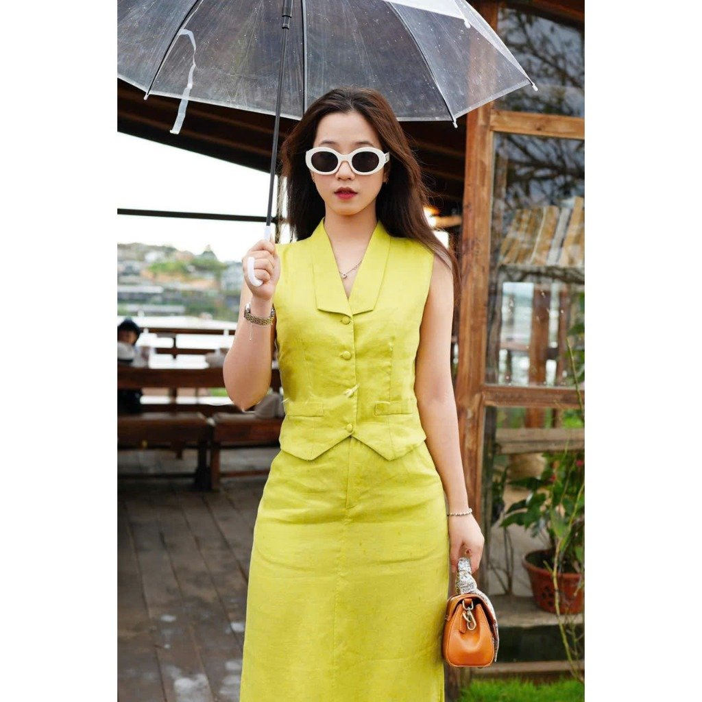 + XS: ngực 78cm, vai 34cm, eo 62cm, V3: 84-86cm, dài áo 48cm, dài váy 88cm